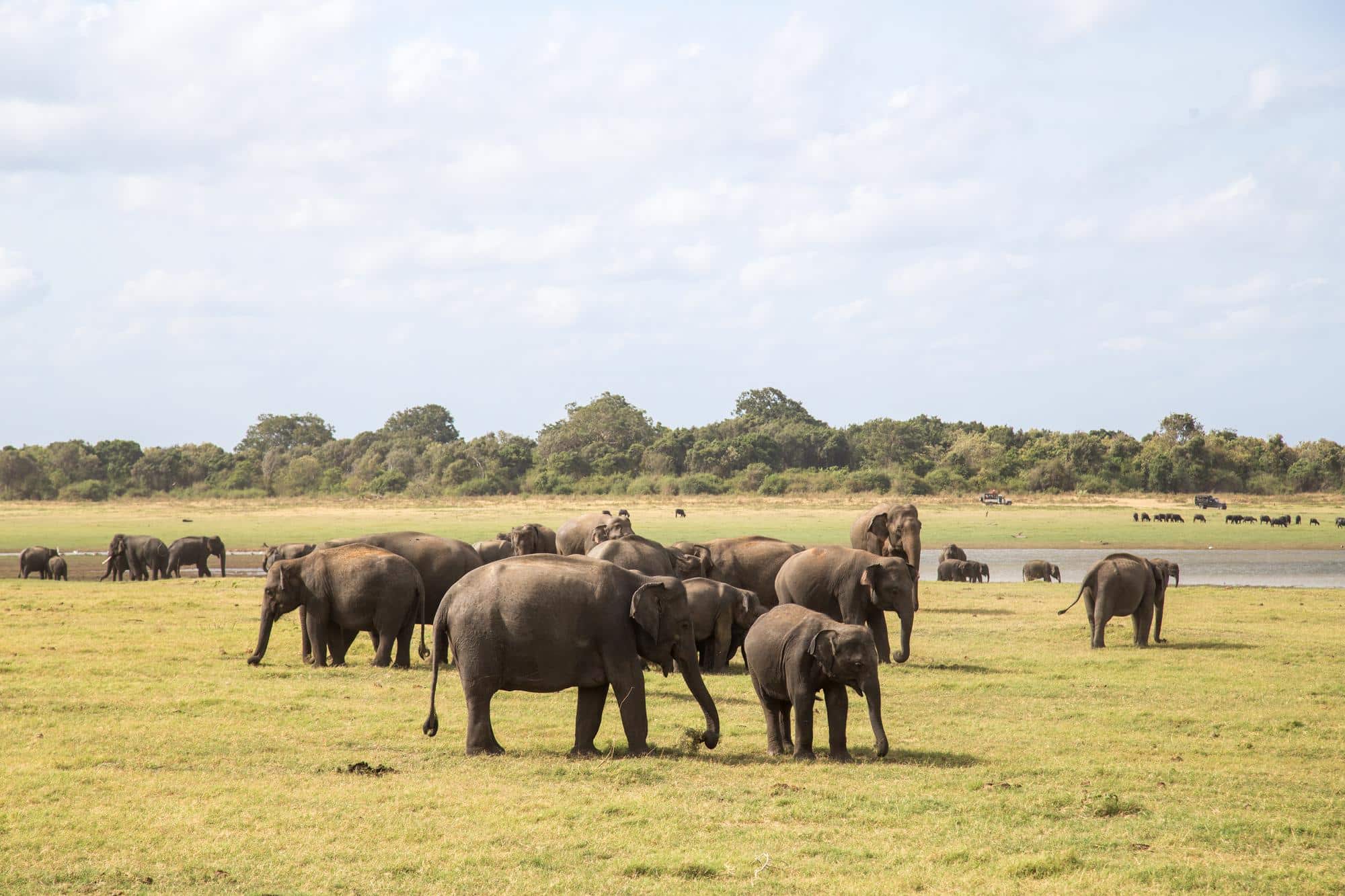 Experience an unforgettable 3.5-hour jeep safari in Kaudulla National Park, where herds of wild elephants gather by the ancient tank amid Sri Lanka’s untamed wilderness.