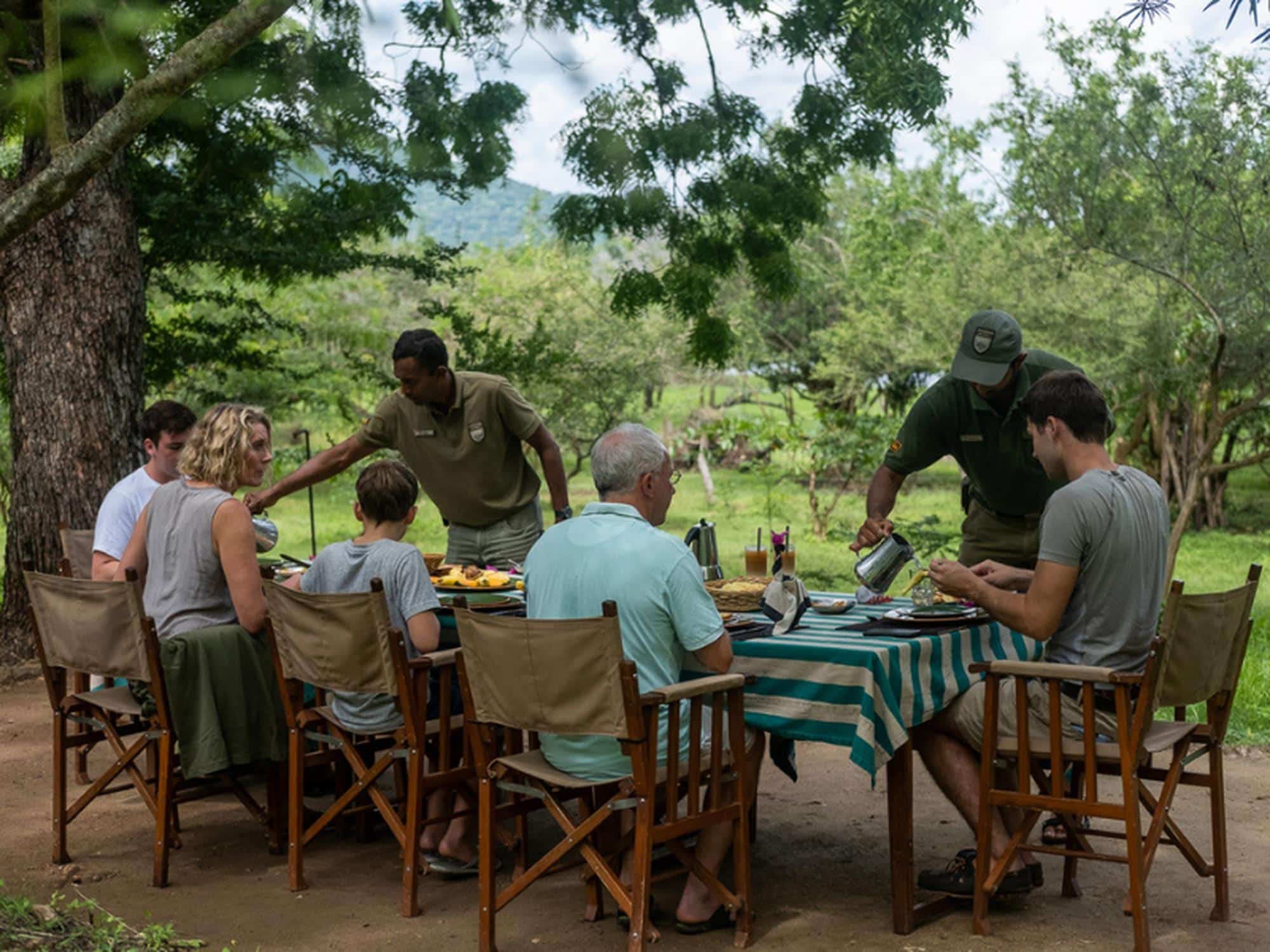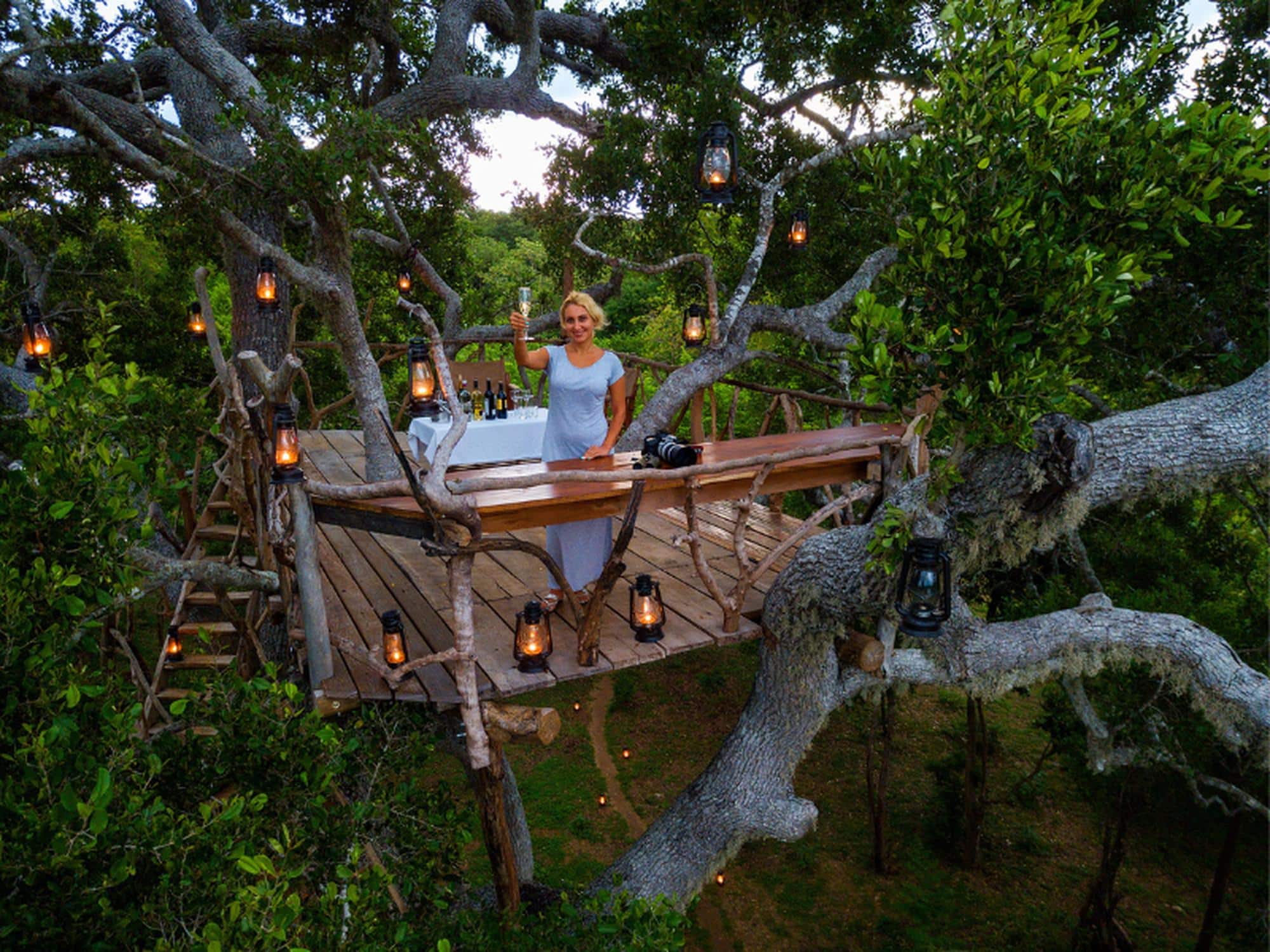 • Glamping under the stars in a jungle setting.