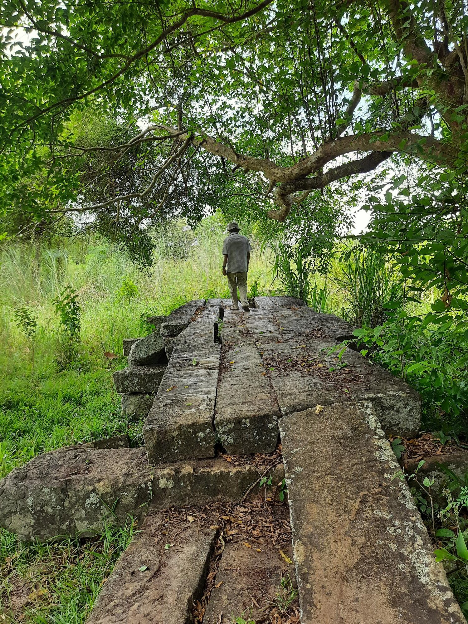 A broken-down bridge made of stone blocks, this is not the complete monument but a mere fraction of it instead. Locally this Ancient Stone Bridge is known as Gal Palama. It was originally built across the Yodha Ela, a canal and water outlet that carried water from the nearby tank to water the neighboring rice paddies. However today, there is no more Yodha Ela beneath the bridge and instead a smaller more recent waterway. There are two such ancient stone bridge, one over the canal and the other over the Malwathu Oya, the main river that feeds the area. Both possibly date back to the late Anuradhapura Period but beyond this, dating is impossible.