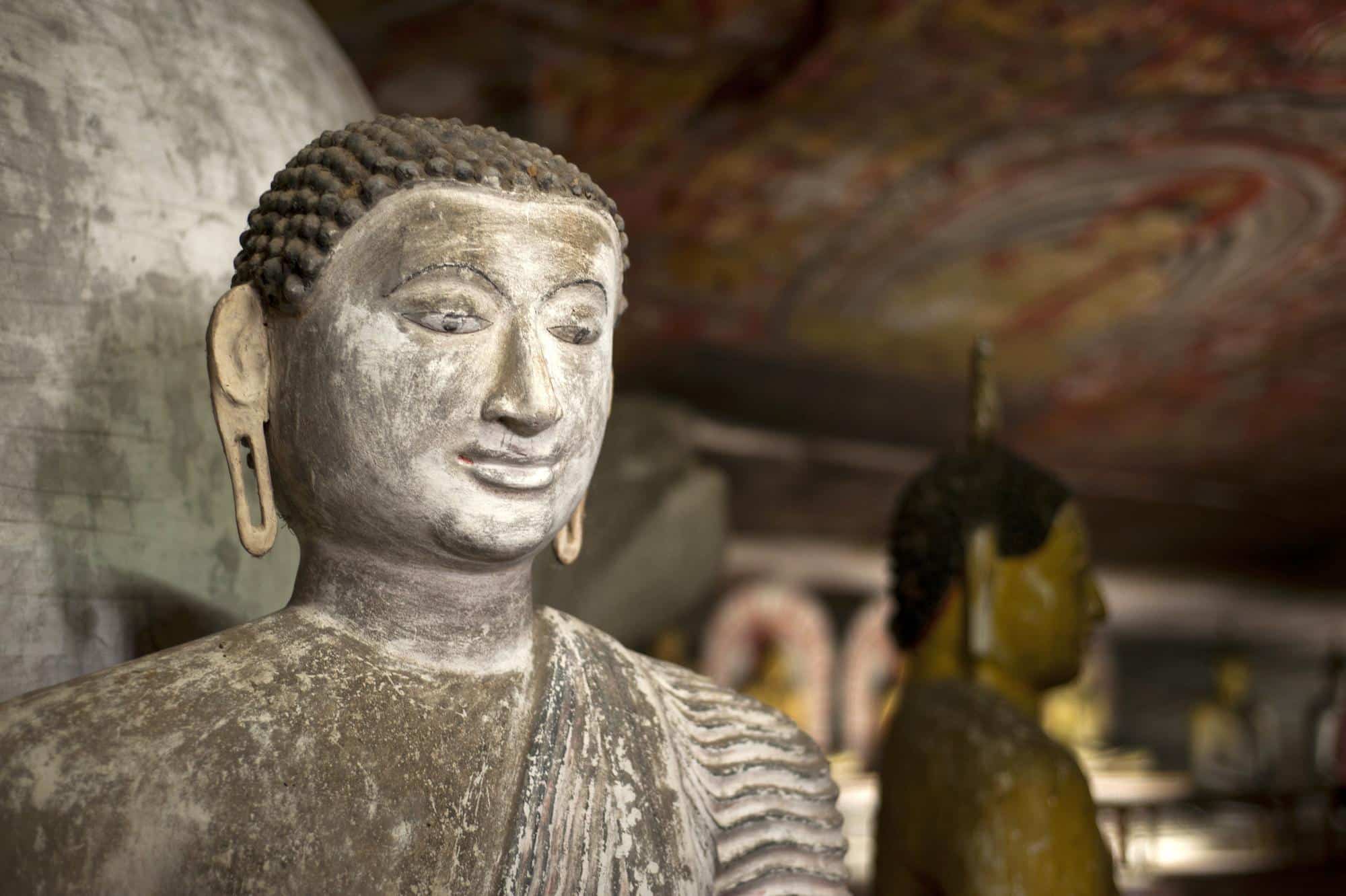 The first cave is the Devaraja Lena or Cave of The Lord of the Gods. This cave features a massive 45-foot statue of the sleeping Buddha in a Parinirvana state, said to be the moment of his final passing. A statue of one of his closest disciples, the Venerable Ananda stands at his feet watching over him. Another one of the Hindu deity Vishnu lies at the head. The walls of the cave are covered in murals. Although they have been repainted over the centuries, they show signs of degradation due to the smoke from the incense and oil lamps of pilgrims in early times.