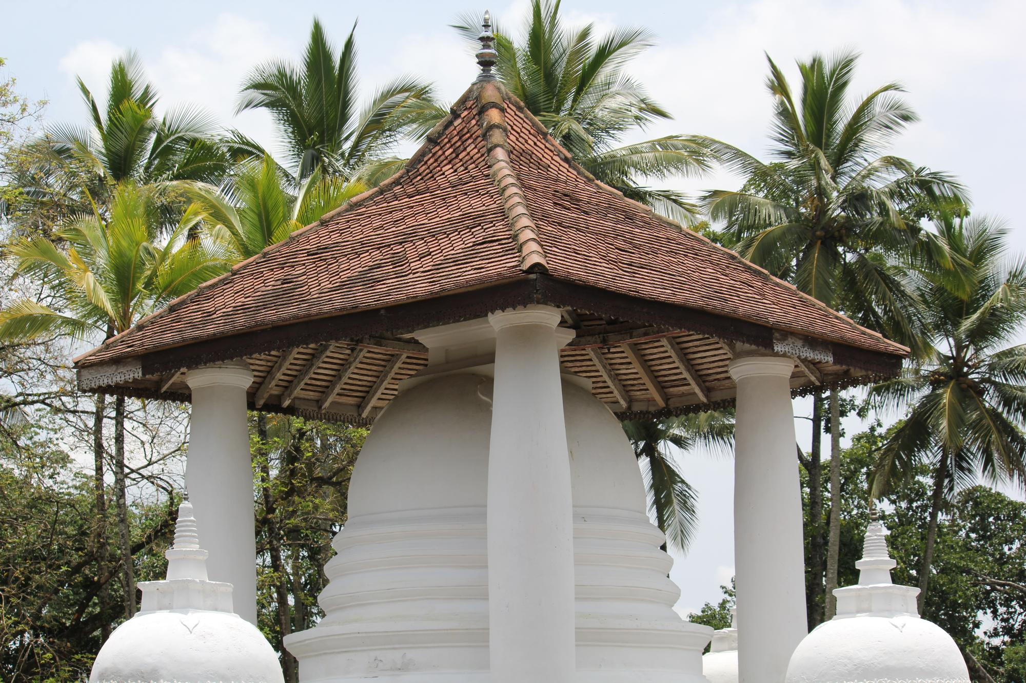 Presently, the Gadaladeniya Temple lies in the Central Province in the District of Kandy. Originally it was the Sri Dharmakirti Vihara, named for one of the founders of the monastery at the time of the then King Buvanekhabahu IV. It was planned and built by the South Indian architect Ganeshavachari, and the remnants of a once-extensive monastic complex are now limited to a small stupa enshrined behind a small, roofed building. This larger stupa stands on a stone platform, carved with incredible detail, and with four more stupas built in a ring around the main one. As for the other pieces of artwork here, there had once been a Buddha image within, said to have been destroyed by the Portuguese invaders.