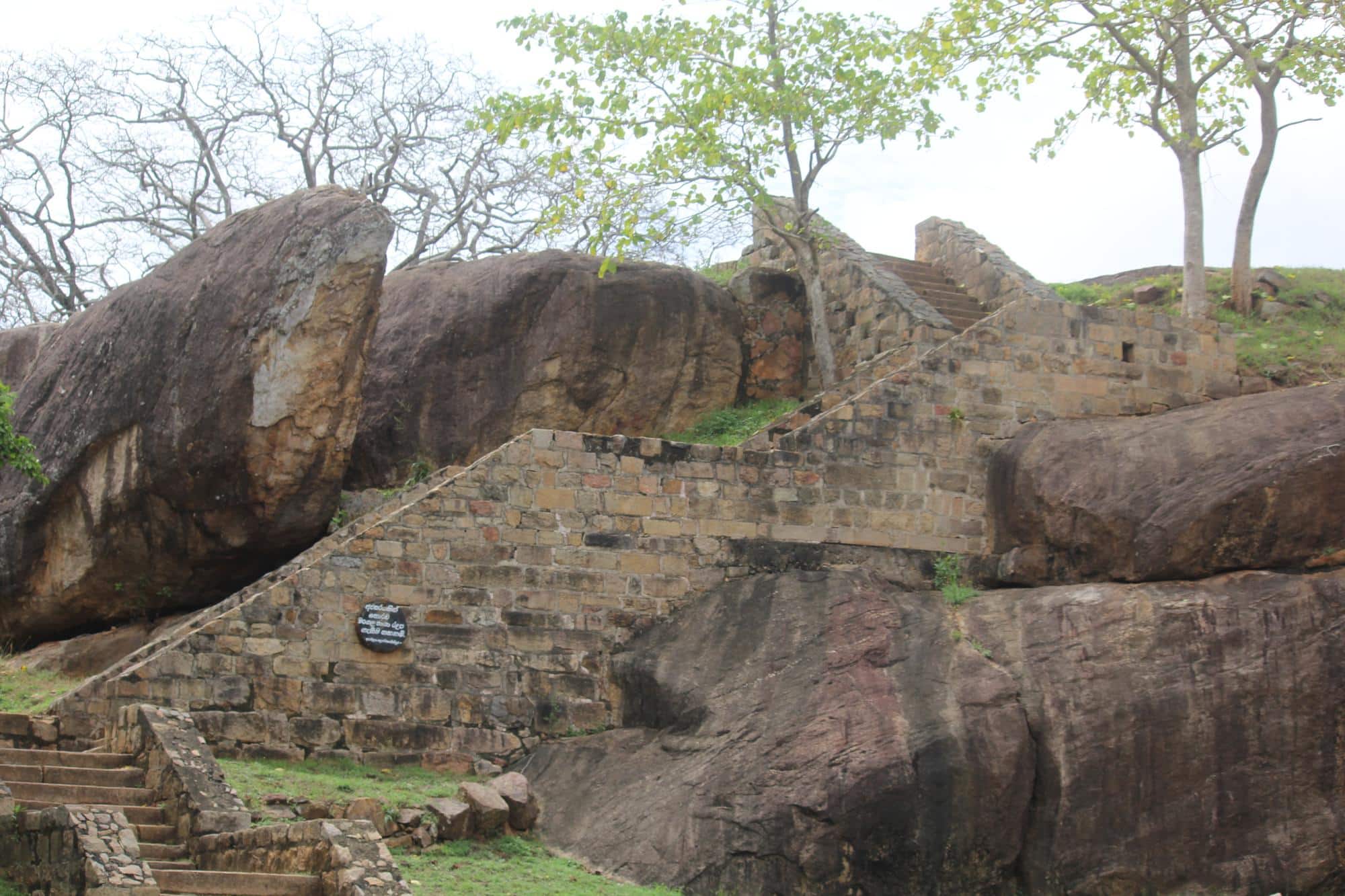 Vessagiriya and Meghagiriya have both been called “Isurumuniya” in the past. At present, the Meghagiri complex is known by the name of Isurumuniya while the “real” Isurumuniya is said to be Vessagiriya. However, there are some who would agree to disagree, so please head over to the ISURUMUNIYA write-up to avoid any confusion. Today’s Vessagiriya complex used to be yesterday’s Isurumuniya, or Issara Samanarama. It was thus a monastery of sorts but set in a network of natural caves with extending drip ledges. We know that there were stupas. There was an image-house for statues, and a refectory built here, albeit nothing actually remains of it today but a series of small stone posts and blocks. This site was built to house five hundred-a rather general terms in old literature for a large number, or else a simple case of hyperbole-monks under the Theravada missionary and saint, Rev. Mahinda.