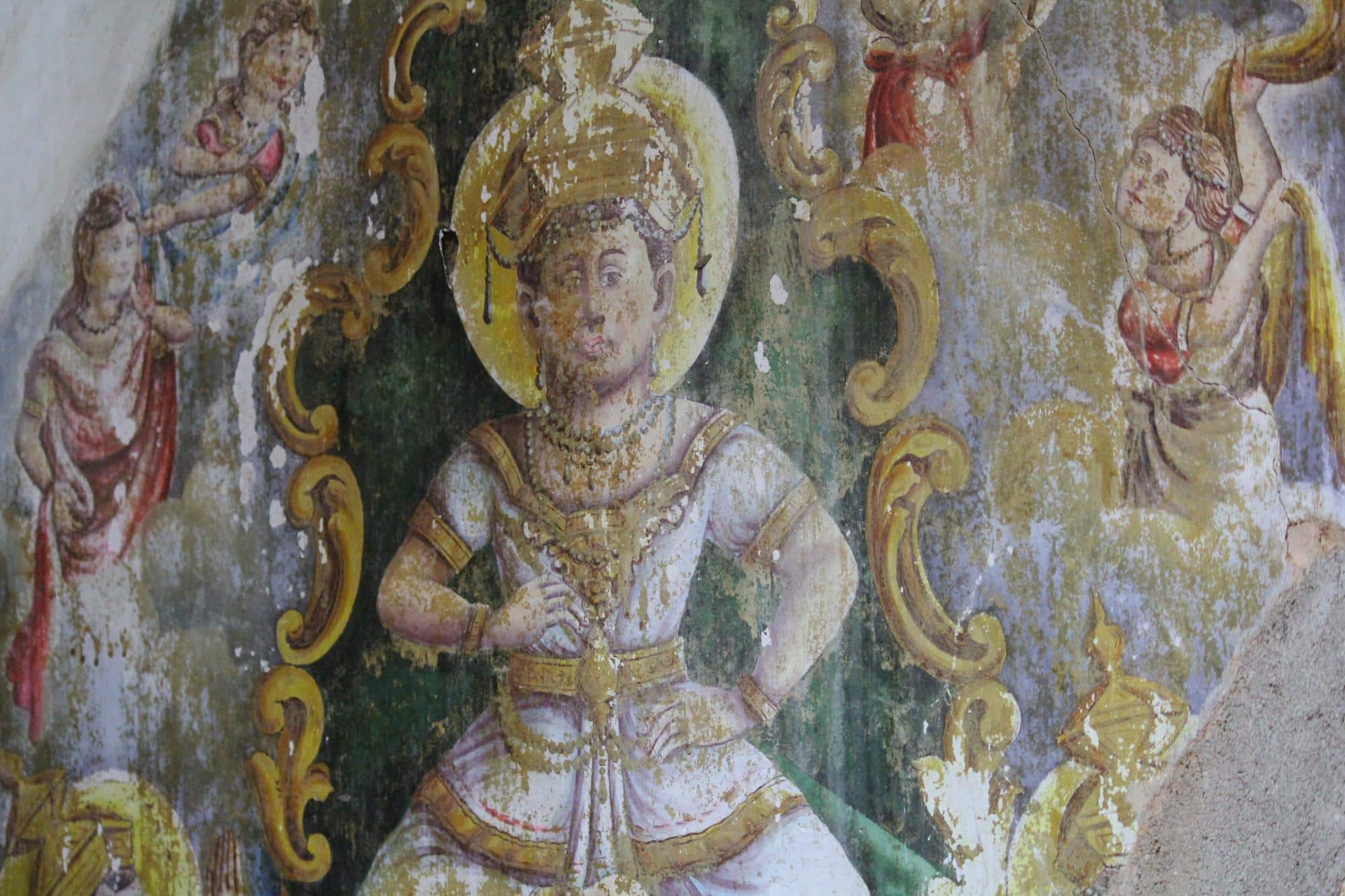 This king built a Buddha image in the largest cave here and turned it into a shrine room. Parakrmabahu VI built a shrine for the god Vishnu, a Bodhisattva, and a number of Buddha statues, also having the inner walls of the cave painted with scenes from the Jataka stories. The eighteen-foot-long image of a reclining Buddha was also constructed under his sponsorship and both he and the queen occasionally made trips to offer their respects.